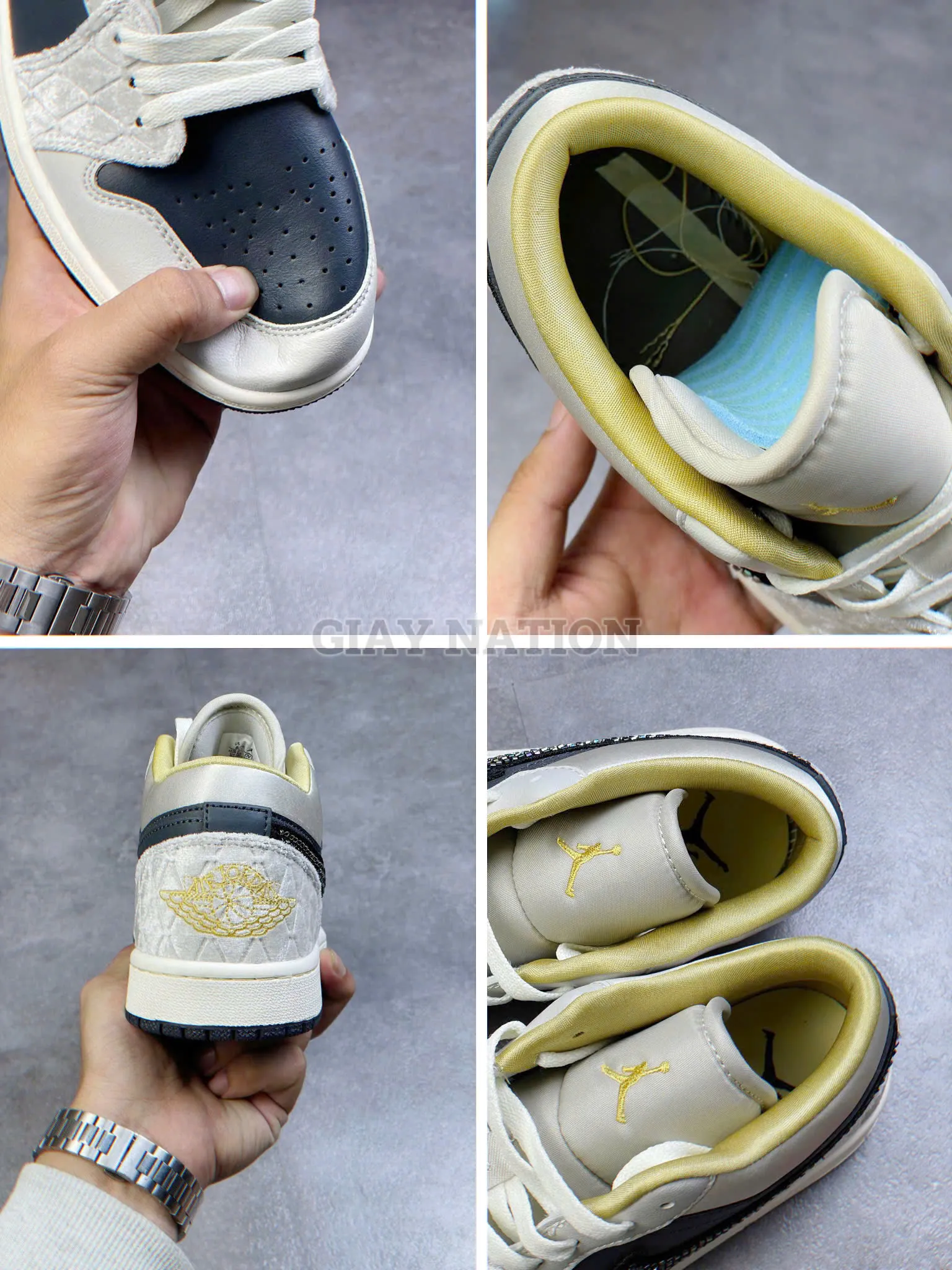 - Thiết kế: Giữ nguyên form dáng cổ điển của Air Jordan 1 Low với những đường nét mạnh mẽ và cá tính.